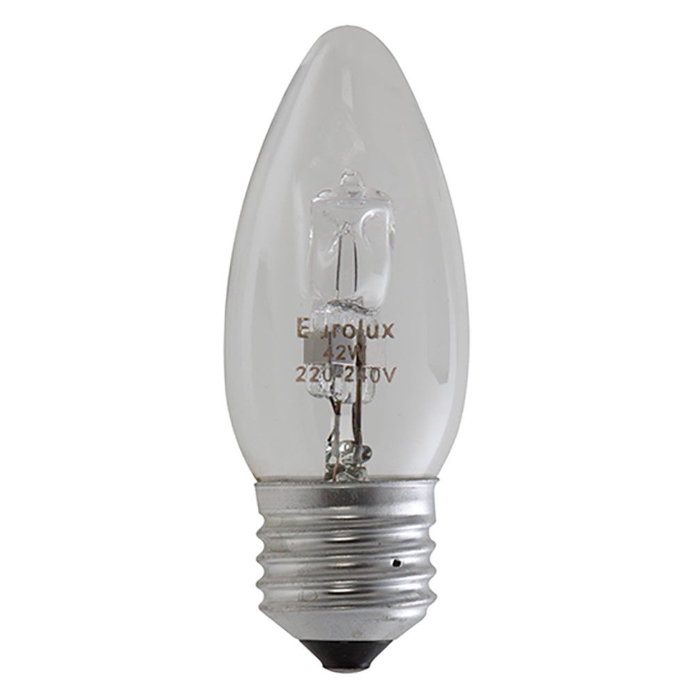 42W E27 Clear Candle Halogen 220V- 240V Warm White Twin Pack