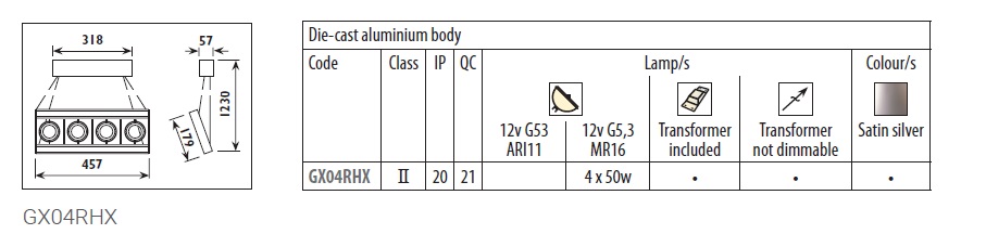 4x50W G5.3 MR16 12V Die-cast Aluminium Body Halogen Spotlight