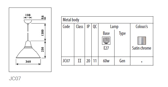 E27 230V METAL SHADE 360MM Metal Body Pendant
