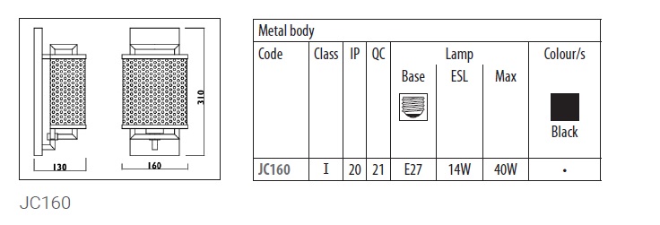 42W E27 230V GLS Metal Body Decorative Wall Light
