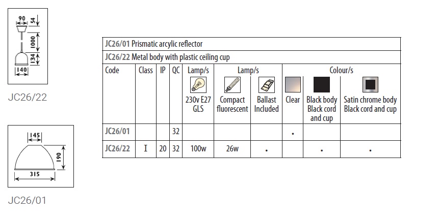 E27 230V GLS CFL Metal Body With Acyrlic Lens Pendant
