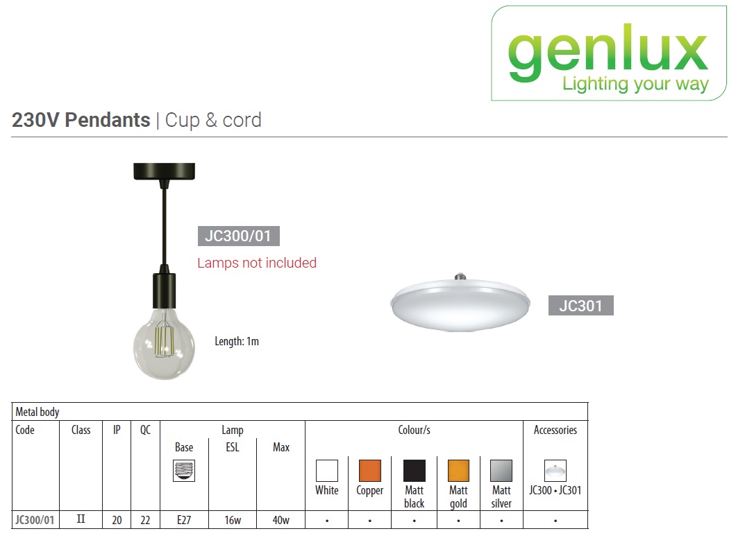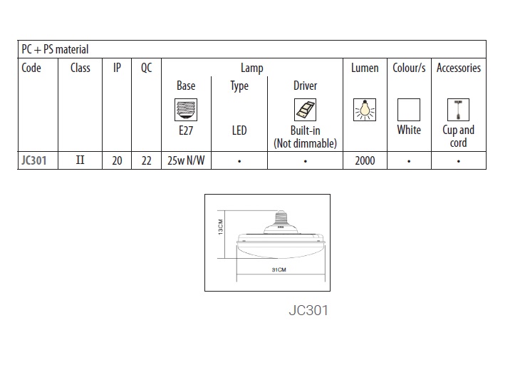 25W E27 230V LED- LAMP SOURCE 309118MM PC & PS Material Cup & Cord Pendant
