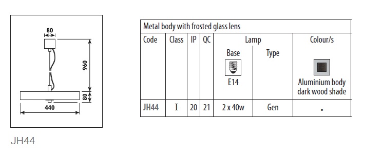 E14 230V OTTO WOOD LARGE Metal Body With Glass Lens Decorative Pendant