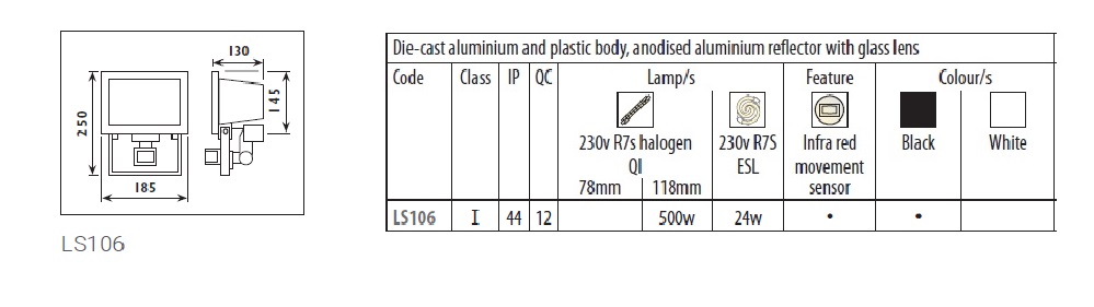 Rx7s Ql 240V MEDIUM SENSOR FLOODLIGHT OUTDOOR