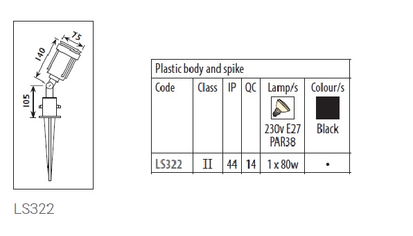 E27 GLS 240V SPIKE PAR38 PLASTIC 1-LIGHT SPOTLIGHT OUTDOOR