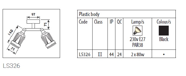 E27 GLS 240V PAR38 WALL MOUNT PLASTIC 2-LIGHT – OUTDOOR SPOTLIGHT