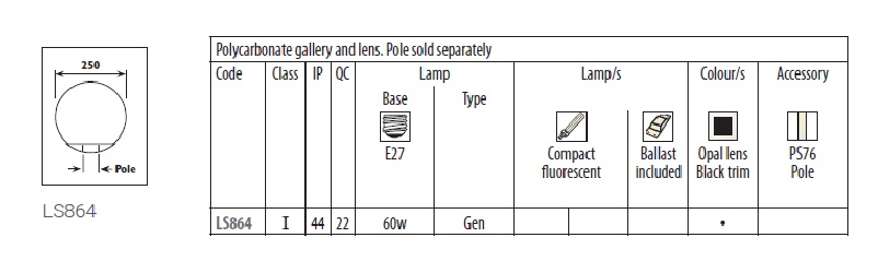 E27 230V 250MM SPHERE & GAL ECONO Pole Mount Outdoor