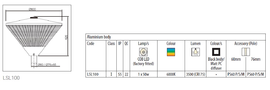 1x50W LED Aluminium Body Pole Mount Outdoor Day Light