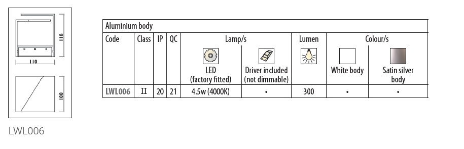 4.5W 230V Aluminium Body LED Decorative Wall Light Cool White