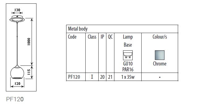 1x50W GU10 PAR16 230V Metal Body Decorative Pendant