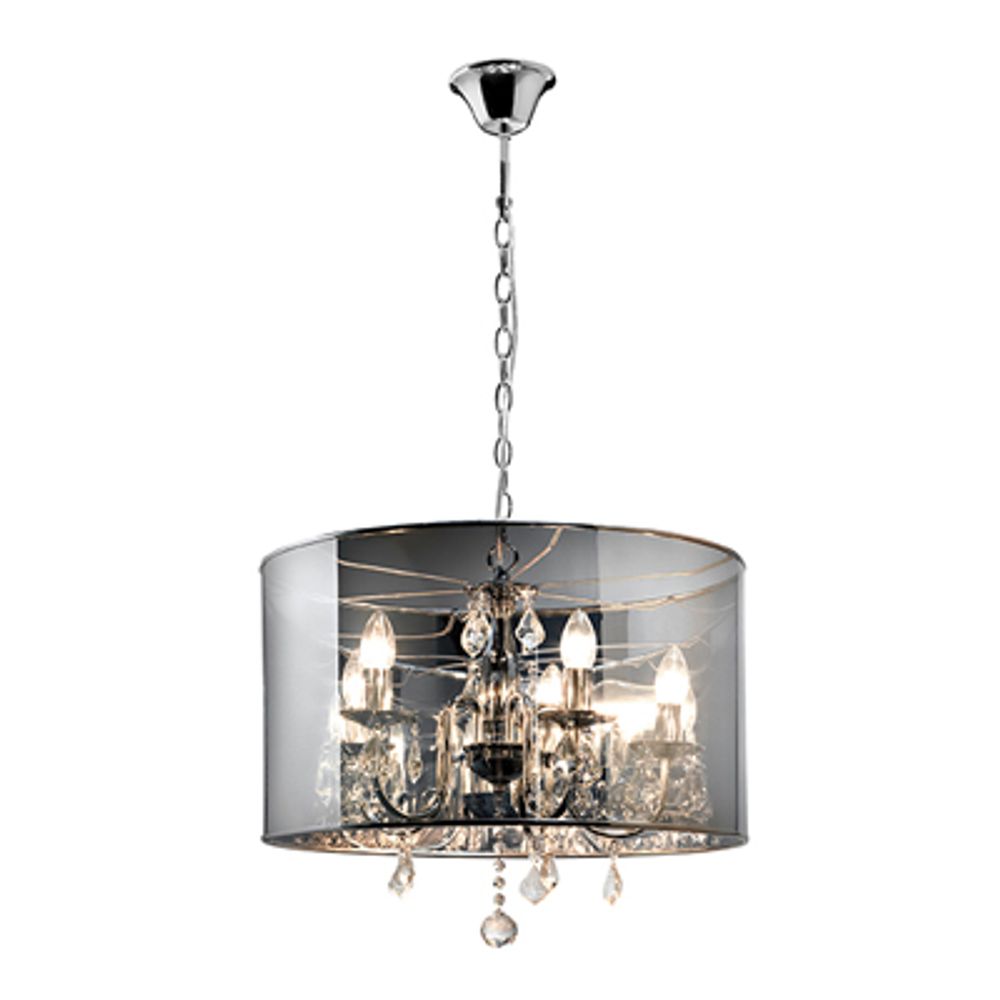 E14 230V Eclipse Round Metal Body & Acrylic Shade With Crystal Drops Chandelier